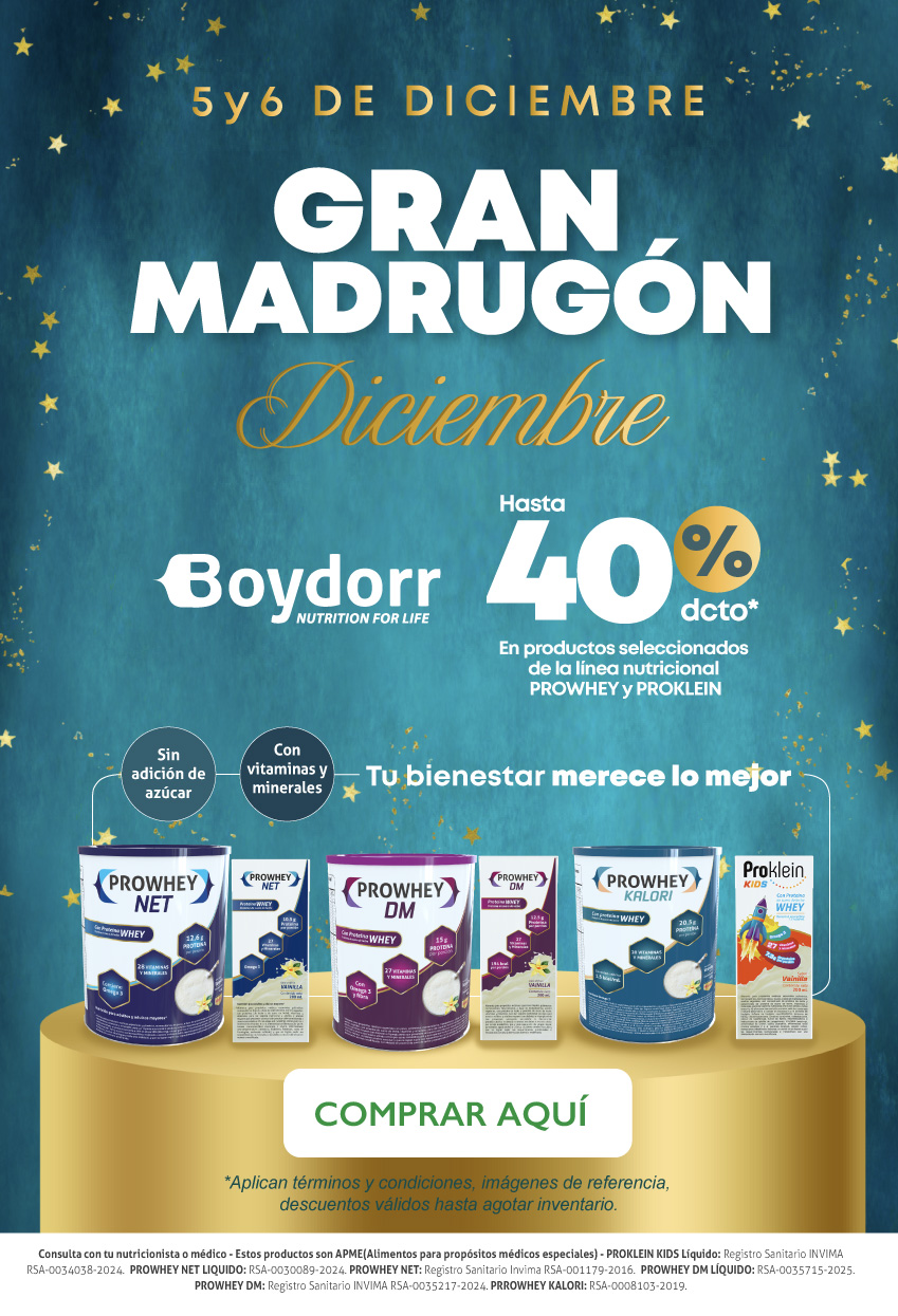 ¡Descubre el Gran Madrugón! Un evento de compras imperdible con descuentos en una amplia variedad de productos durante varios días. Nuestra tienda en línea te ofrece ofertas en categorías como Dermocosmética, cuidado personal, maternidad y bebés, droguería, vitaminas, nutrición especializada, productos para mascotas y artículos para el hogar. Regístrate o inicia sesión en nuestro sitio web para agregar productos a tu lista de deseos y acceder a ellos más rápidamente durante los descuentos. Únete a nuestro programa para disfrutar de beneficios adicionales y catálogos especiales relacionados con el Gran Madrugón. ¡Aprovecha descuentos del 10% al 50% en una amplia gama de productos!
